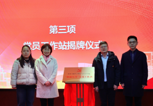 与会领导和老师共同为“数励先锋”党员工作站揭牌。