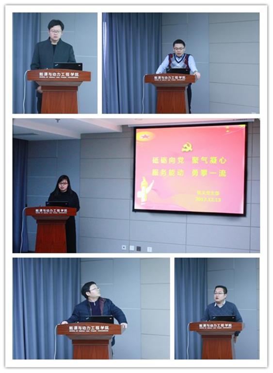 能动学院各系所党支部围绕2017年取得的党建进展情况分别进行了工作述职和讨论交流。会上,各支部纷纷介绍了系所党政班子加强班子建设和制度建设、积极发展党员、发挥党员的先锋模范作用的做法。支部工作规范化,始终坚持“三会一课”制度,从实际出发,建立健全党员学习方式,加强政治思想工作,培养党员党性意识,推进党风廉政建设,促进党务公开制度,营造良好的工作学习氛围。重视党员发展、教育和管理,积极发挥党支部的战斗堡垒作用和党员的先锋模范作用,进一步加强精准帮扶工作,如积极参与“三秦教师结对帮扶贫困学生”,与学院困难退休人员进行一对一帮扶等。