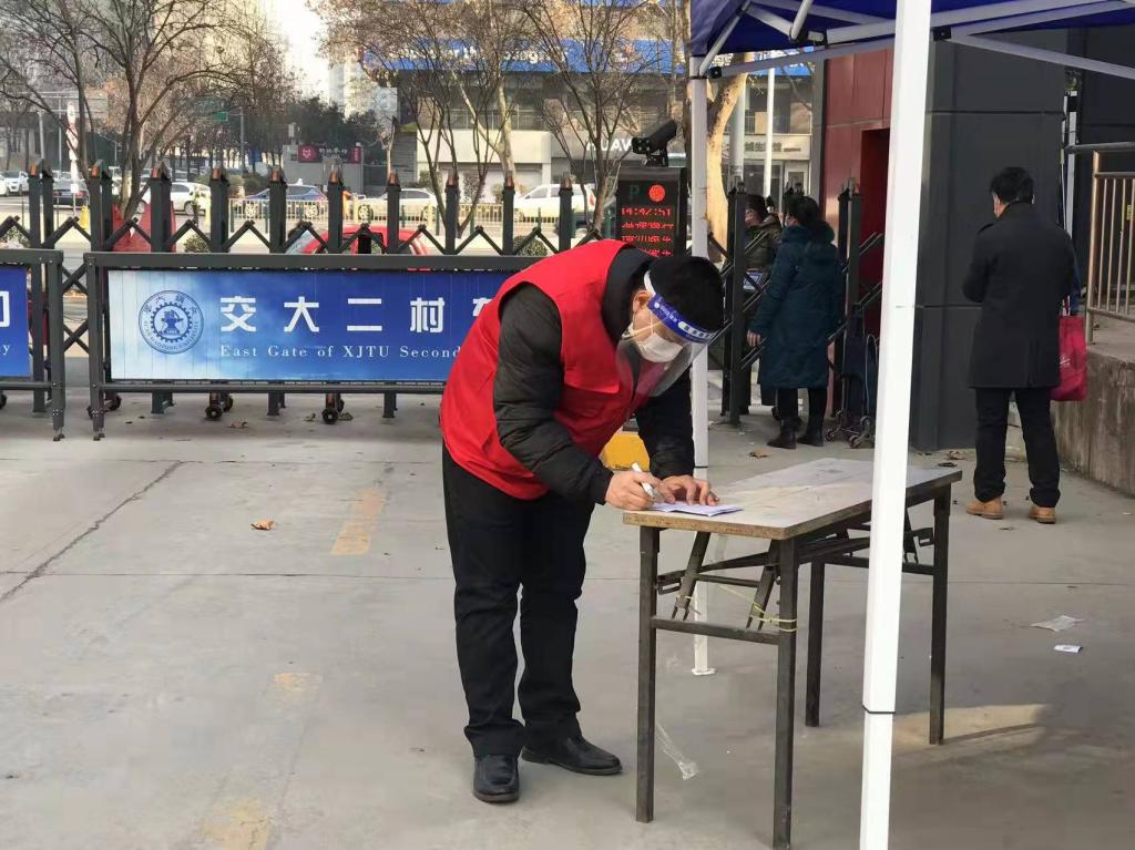 田红阳就职于陕西半导体先导中心(隶属深圳办公室),在深圳工作,家人都在广东居住,此次来西安参加公司年末总结会议暂居交大三村同学家,疫情开始后便一直在三村居住。看到社区招募志愿者,田红阳第一天就报名加入了核酸检测“大白”组负责信息录入工作。第一次核酸检测面向二村、三村所有居民,时间紧、任务重,网络不稳定,田红阳又负责老人和儿童等没有二维码人员的信息录入,受低温天气影响,防护面屏上满是水汽,每一次录入都是对耐心细致的极大考验。就这样,田红阳与志愿者们一起坚守在岗位上,将近六个小时才完成了所有检测任务。之后田红阳一直作为“大白”组的成员主动争取任务参与二村、三村的核酸检测和入户检测工作。没有安排核酸检测时,他就加入队伍引流、维护秩序的志愿者队伍。