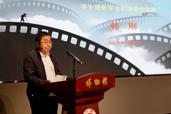 韩刚在致辞中回顾了自己与交大的故事,回忆了创办摄影学会以及与摄影学会一起度过的岁月,表达了对摄影学会的祝福。