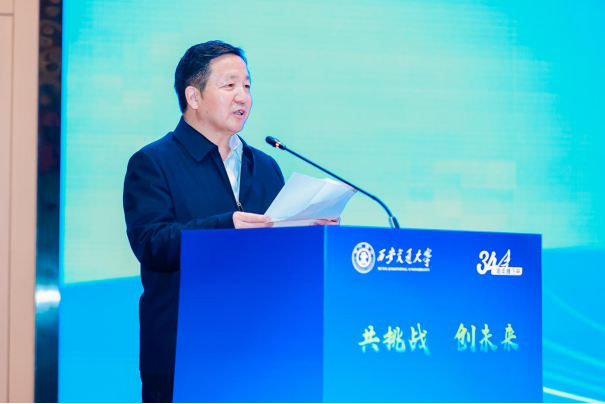 王树国代表学校致辞。他高度评价了特变电工股份有限公司取得的辉煌业绩,期待双方进一步加强务实合作,努力携手共同为经济社会发展作出新贡献。他殷切鼓励青年学生坚定理想信念,在世界舞台绽放中国青年和交大青年的光彩,一是要弘扬“听党指挥跟党走”的西迁精神,在祖国最需要的地方绽放青春之花。交大人要以国家、民族发展为己任,不忘艰苦创业的传统,将更多“不可能”变为“可能”;二是要葆有无限创造力和探索力,在世界科技进步中书写交大人的奋斗故事。交大人要在科技创新实践中凝练问题、破解难题、寻求突破,以攻克“卡脖子”技术难题为目标,把关键核心技术牢牢掌握在自己手中;三是既要仰望星空,也要脚踏实地。青年是民族未来之希望,是民族之传承者,面对百年未有之大变局,青年人通过努力和奋进必将大有可为,一起为世界之光。