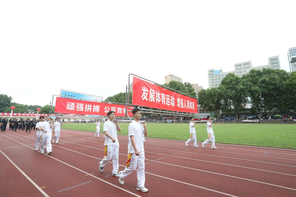 伴随着激昂的《运动员进行曲》,65支代表队依次进入会场。他们以昂扬的姿态,迈着整齐稳健、铿锵有力的步伐走过主席台。