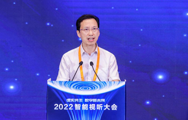 8月16日,2022智能视听大会在青岛举办。在元宇宙产业发展论坛上,西安交通大学党委常委、常务副校长郑庆华发表致辞。