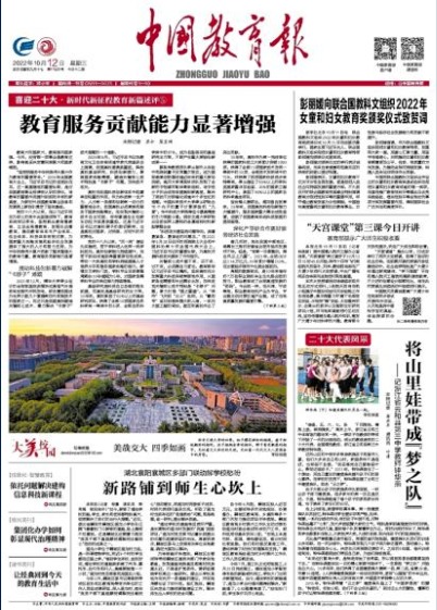 10月12日,《中国教育报》头版【大美校园】栏目刊发西安交通大学校园美景《美哉交大 四季如画》。